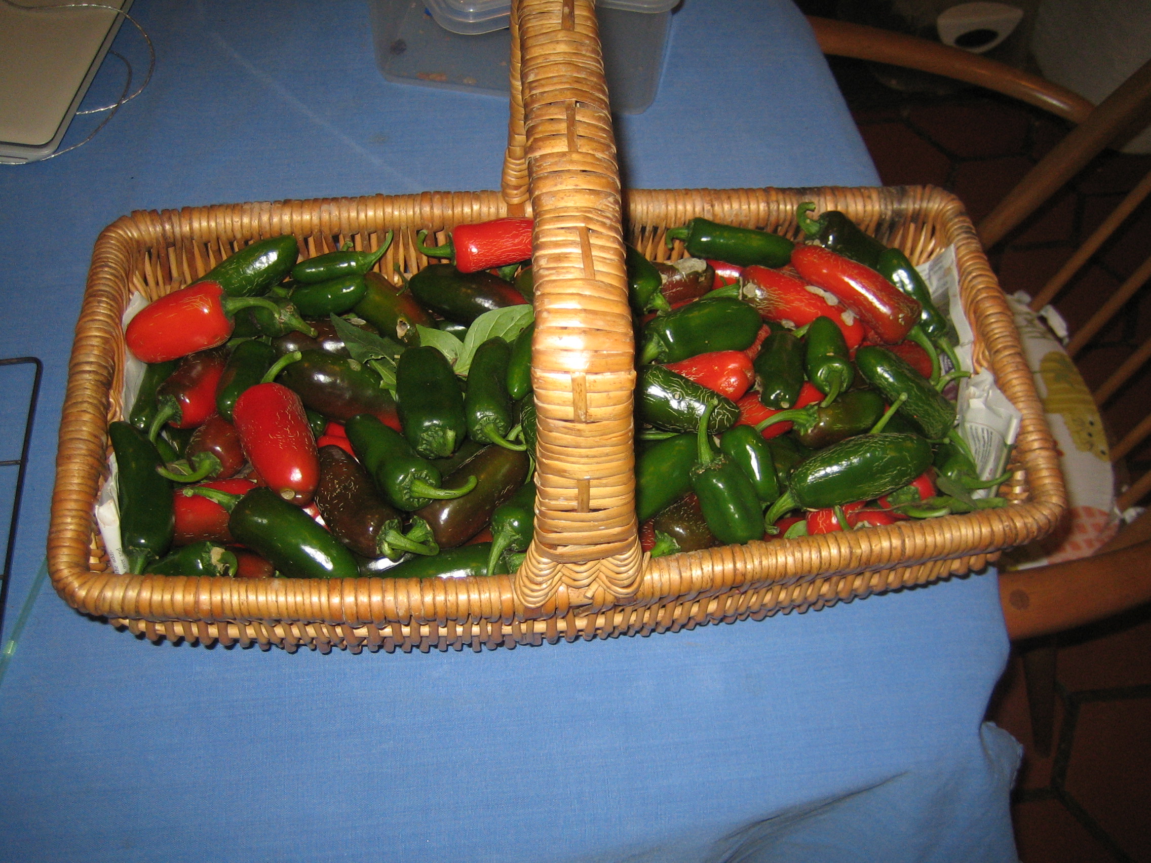 Most years I try to grow a few different varieties of chile in the polytunnel. Jalapenos are always on the list so we can pickle them for use on pizzas, in fajitas and tacos and suchlike. 2011 hasn’t exactly been the best year for vegetables because of the odd weather, but my Jalapenos seem to have done ok (despite the odd bit of munching by slugs or snails):