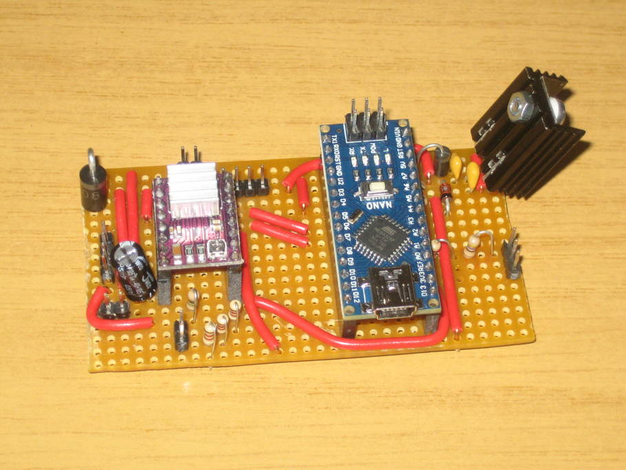 I think it must be a short somewhere between some of the tracks. This evening I’ve built a new board from the ground up, plugged in the same Nano and stepper driver and it’s running “blink” fine. A small part of the layout is slightly different from the first one as I realised I could do it a little more neatly, but the circuit is clearly the same. I guess I just need to get the big magnifying glass out so I can check things over better.