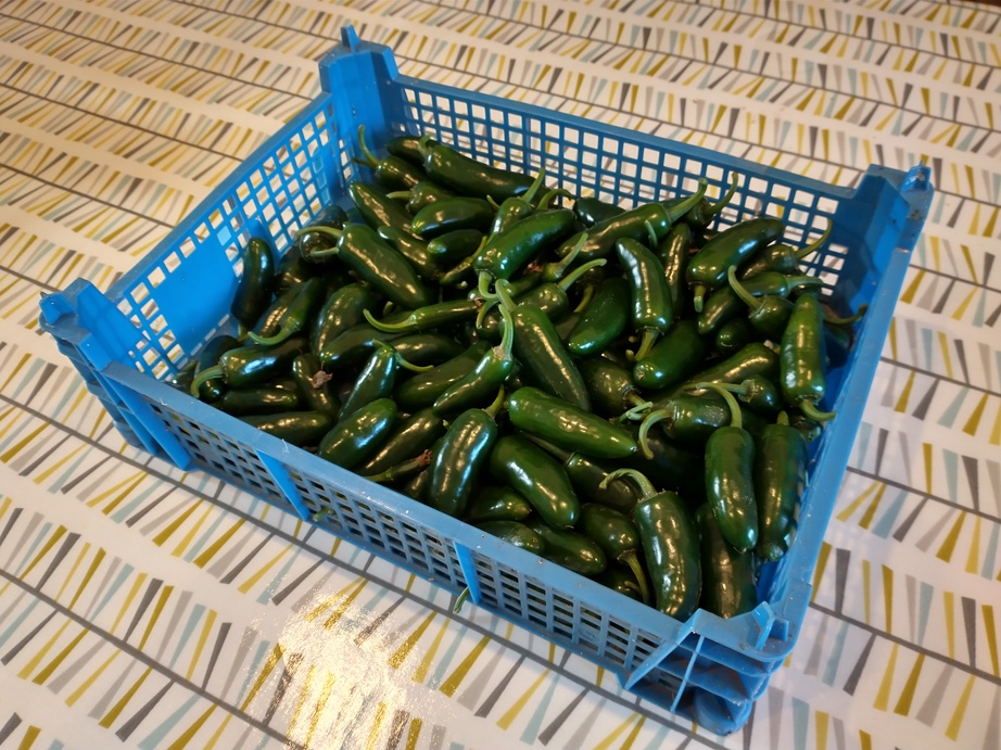 And whilst I was doing stuff in the polytunnel I picked all of the sweet peppers, japalenos and cayennes. They’re all still green, but things aren’t going to get any better at this point I don’t think. The jalapenos I shall pickle whilst the cayennes can go into the airing cupboard to dry. The sweet peppers we’ll probably eat some of in salads and the rest we might eat stuffed. I wonder if they’ll freeze ok from cooked if they’re stuffed with rice and other vegetables? Perhaps there’s only one way to find out 🙂