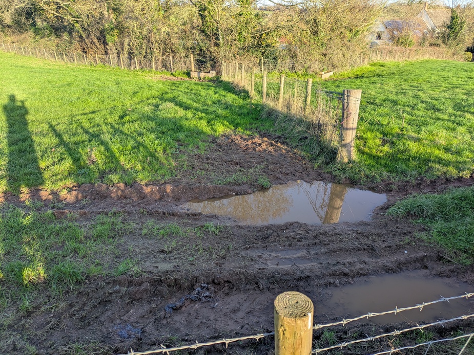 At first I thought it might be here, where I assume the pipe crosses the field, but by this time we’d had some heavy rain, so perhaps not.