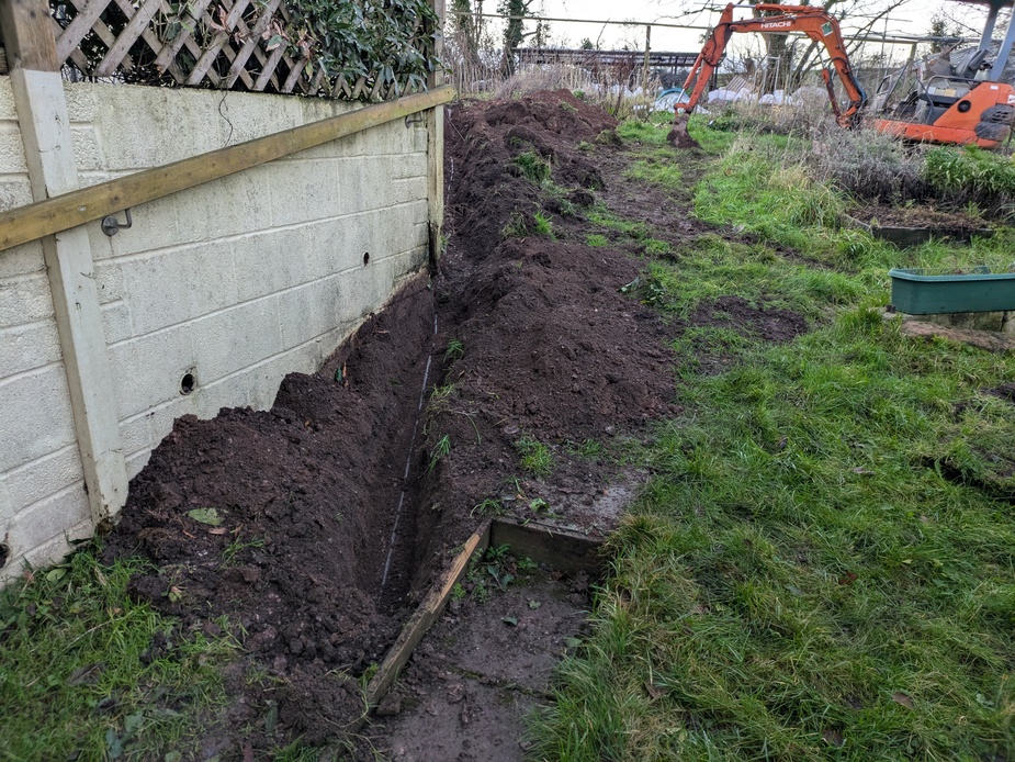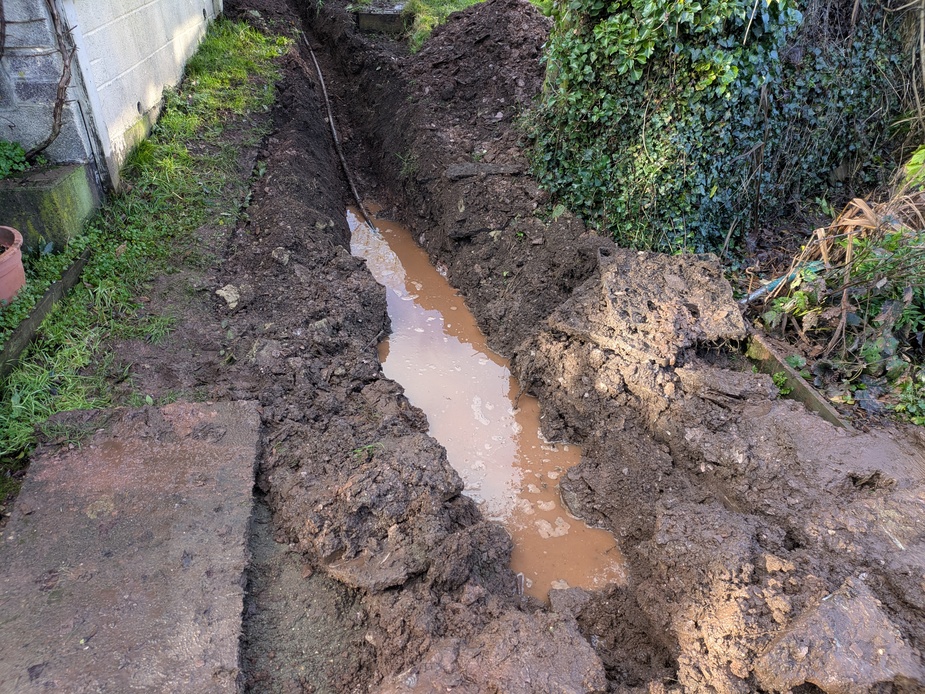 After which the job could be done properly, backfilling with some sand before the spoil after checking that the meter was no longer spinning like a dervish!