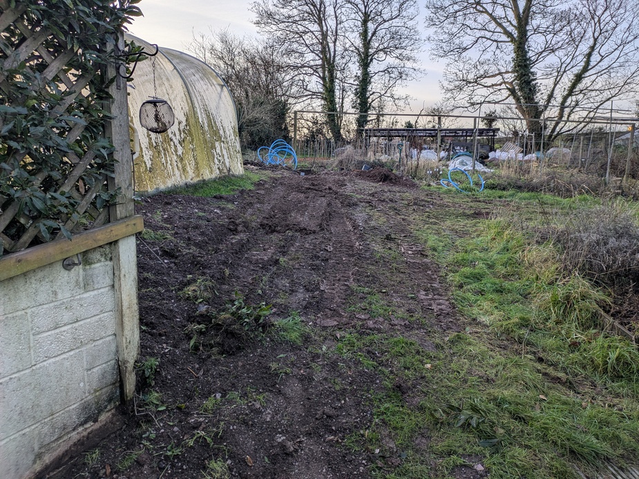 Fortunately our insurers helped out and their contractor eventually decided the leak was on our property, under the steps up to the veggie plot. After some to-ing and fro-ing, just before Christmas digging commenced to try to find it.