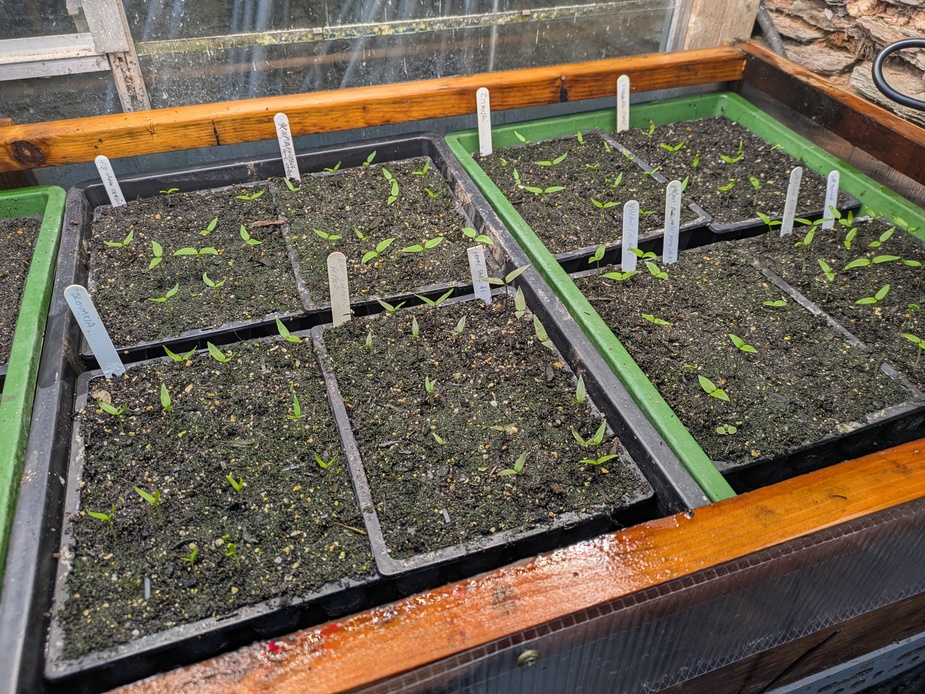 Checked on the peppers under the growlight this lunchtime and they seem to be doing well.
