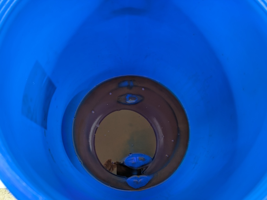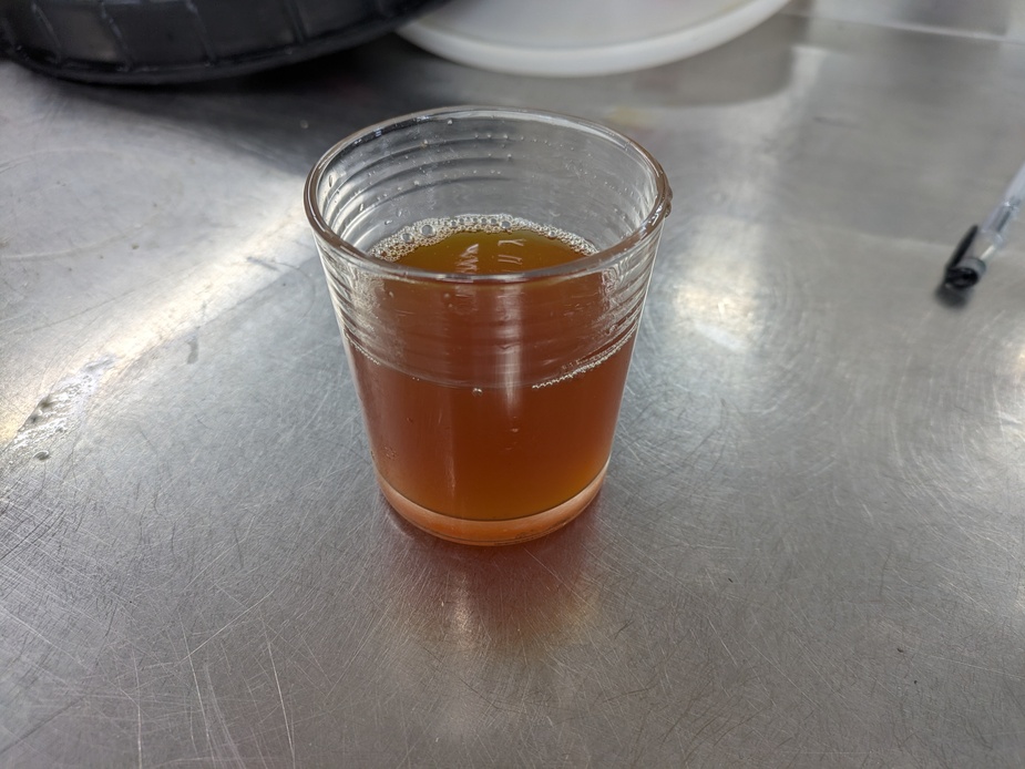 This is what was left in the bottom of a 45l barrel of Ashmead’s Kernel juice after it had been syphoned off. Doesn’t look like much but it seems to improve the quality of the bottled juice in that there are far fewer “lumpy” bits in the sediment (despite straining the juice through a fine cloth before putting it into the barrel).