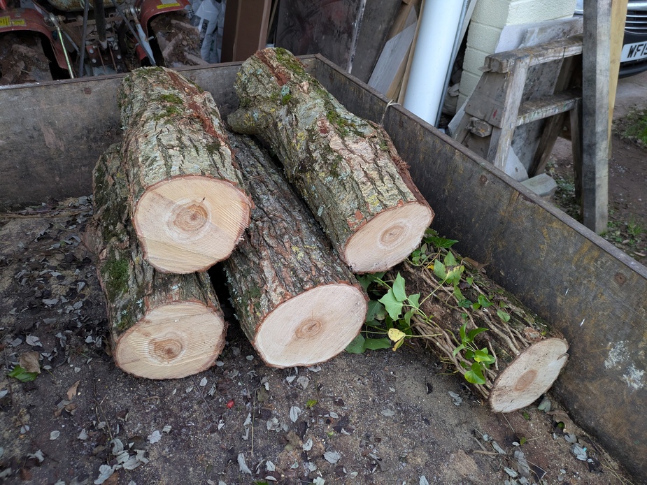 These are freshly-cut logs waiting to be impregnated with mushroom spawn. My first “vegetable”-growing experiment for this year. I have dowel spawn on order for Shiitake and Summer Oyster mushrooms which should arrive later this week. I can’t wait to get started 😀
