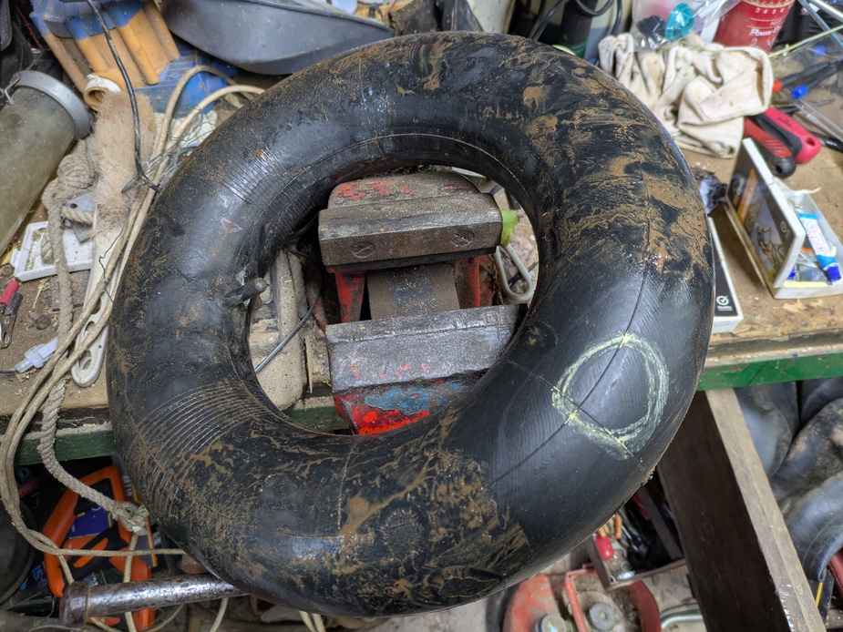 Removing the tyre and inner tube from the wheelbarrow wheel turned out to be somewhat easier than I was expecting given that the front wheels of the lawnmower are the ones I usually have to deal with, and they’re an absolute pig.