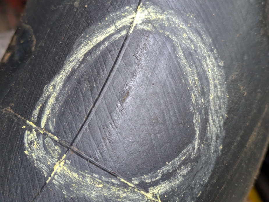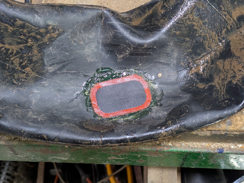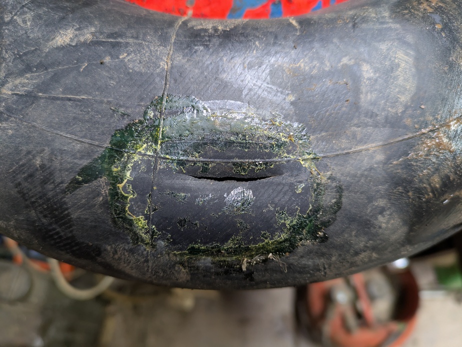 After leaving the patch for some time to dry I reinflated the tyre just to check there weren’t any other leaks and realised that air was still leaking from the patch site. In fact, the patch hadn’t really stuck very well at all, and when I peeled the rest of it away, this is what I found.